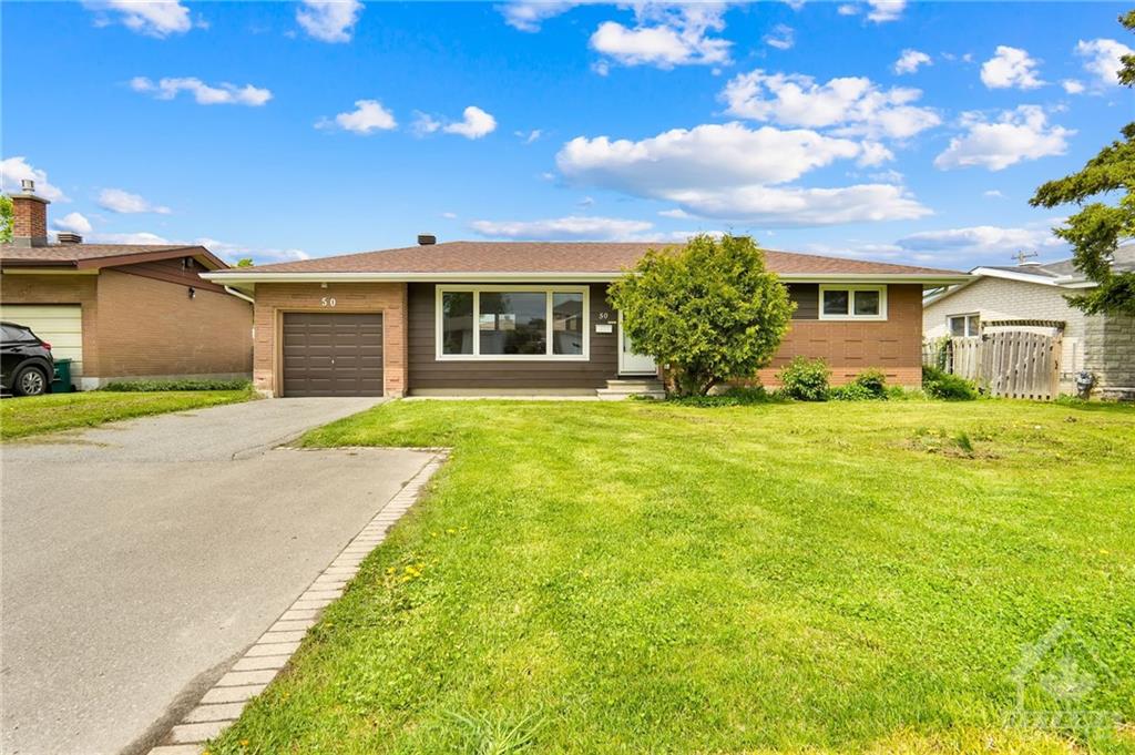 Welcome home to 50 Hilliard Avenue! This beautifully renovated 3 + 2 bedroom bungalow is the one you've been waiting for. Situated in Fisher Glen on a sought after street. Rarely available with excellent potential for an In-law suite or rental unit. Modern, bright and open concept. Gleaming hardwood floors on the main level. You'll love the chef's delight, gourmet Kitchen with island and breakfast bar open to the Living room and Dining room. Recently renovated lower level with laminate flooring, 3 piece bathroom and laundry. New central air system. Fully fenced, pool sized backyard on a huge 65' x 100' lot. The patio is perfect for family gatherings and BBQs. Steps to transit, restaurants, Lexington Park and Experimental Farm. Near schools, Ottawa Hospital and Big Box Shopping. Excellent location with easy access by transit or car to Algonquin College, Carleton & Ottawa University, downtown, & Highway 417. Immediate occupancy available. Move in & enjoy! Some photos virtually staged.